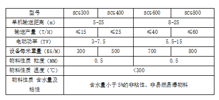 注:1.輸送產(chǎn)量是以散體比重為1.6噸/米3,溫度小于300℃的水泥熟料測定。