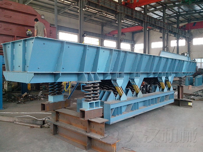 (1)振動輸送機的底架與槽體必須安裝平直,建議其平直度在10米長度不大于5-8毫米,底架與槽體過大的撓曲會引起較大的安裝應(yīng)力,進而會引起這些機件的早期損壞。